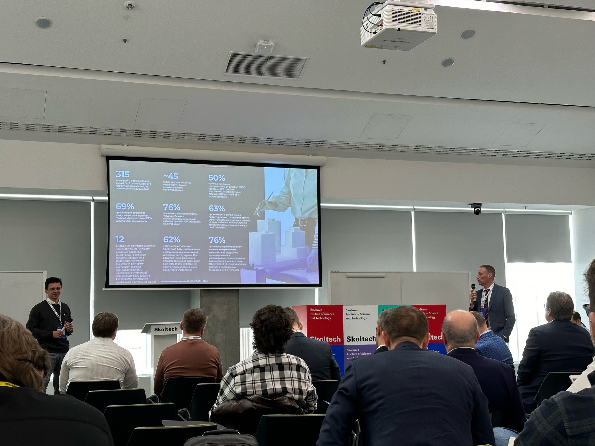 В дискуссии приняли участие порядка 100 человек из разных отраслей экономики: ВИНКи, атомная, строительная, авиационная и судостроительная отрасли, проектно-инжиниринговые компании, научные организации и ВУЗы.