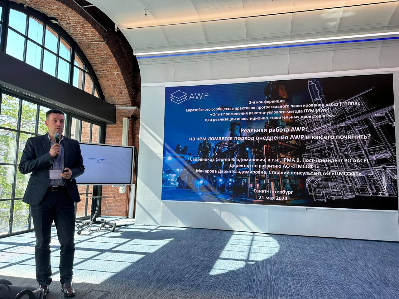 Сергей выступил с докладом, в котором представил эталонный процесс и ролевую структуру участников применения AWP (Advanced Work Packaging) для проектов в Российских реалиях. В своем выступлении он остановился на аргументах, подтверждающих высокую эффективность реализованных в ПМСОФТ проектов с применением подхода AWP, таких как:
