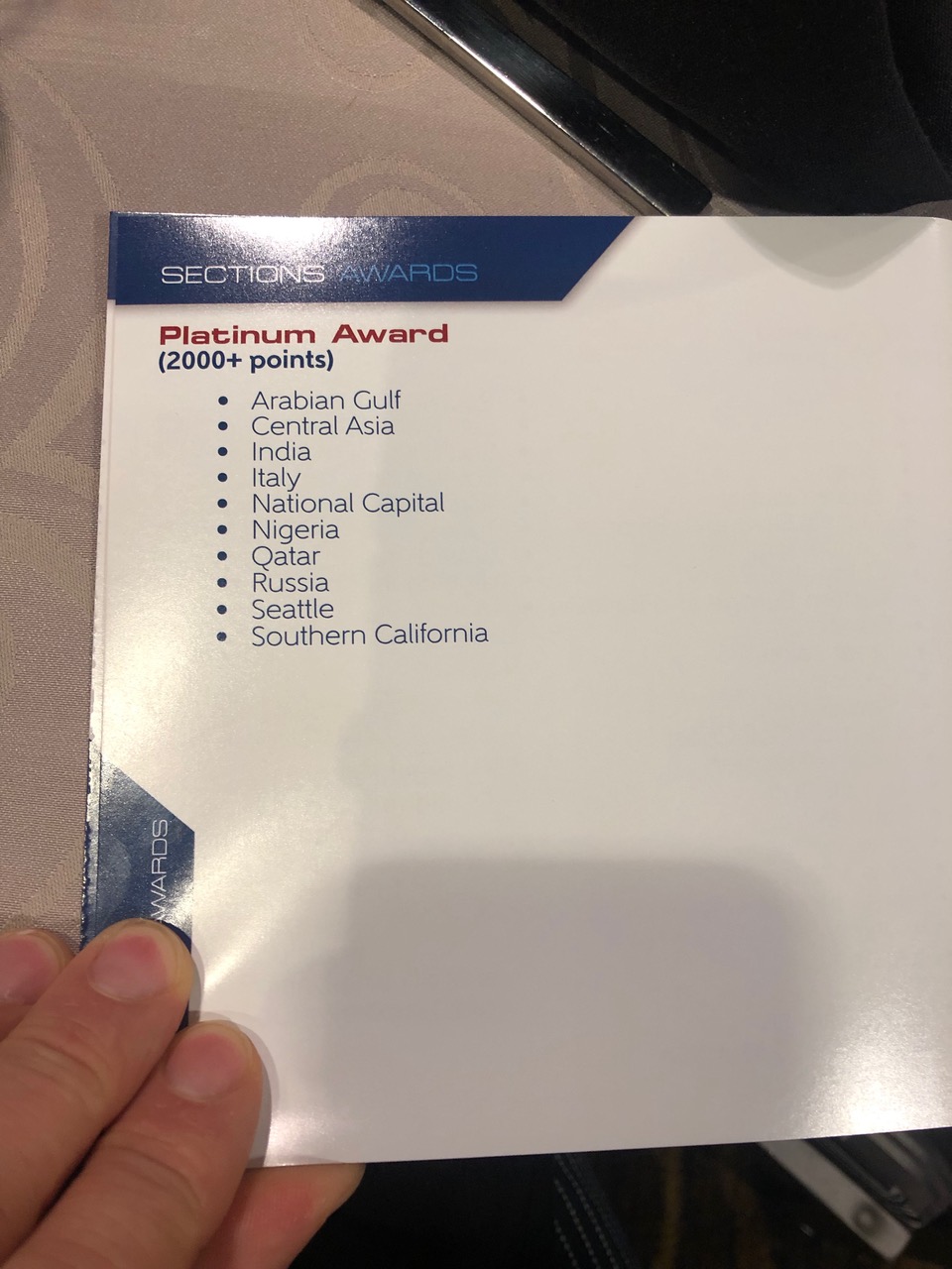 Также по давно сложившейся традиции, в ходе мероприятия состоялась церемония награждения региональных отделений Ассоциации. Российская секция вновь получила платиновую награду, таким образом войдя в число наиболее активных и успешных региональных представительств AACEI по итогам 2018-2019 года.